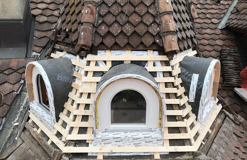 Ob klassische Lukarne, traditionelles Ochsenauge oder modernes Dachfenster – wir planen jedes Element sorgfältig nach Ihren Wünschen und den baulichen Gegebenheiten. Die Fertigung erfolgt in Elementbauweise präzise in unserer Werkstatt, und die Montage vor Ort ist in kürzester Zeit abgeschlossen.