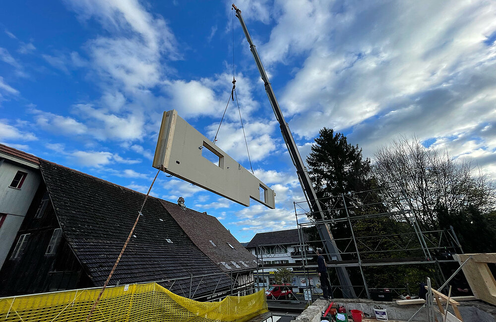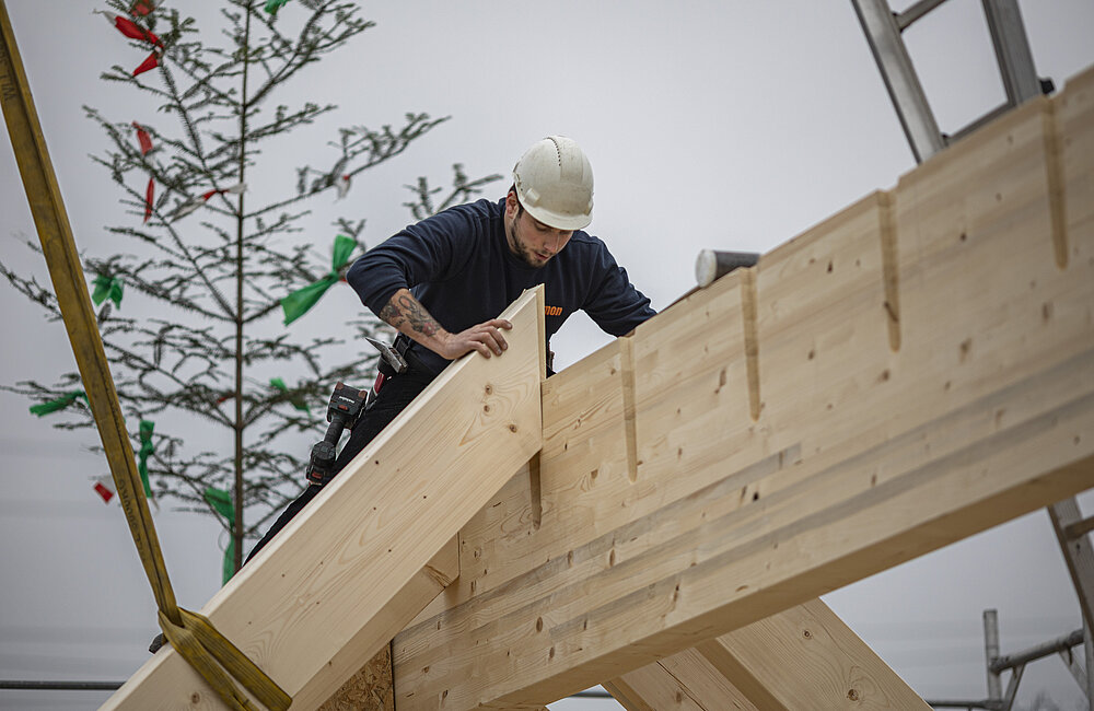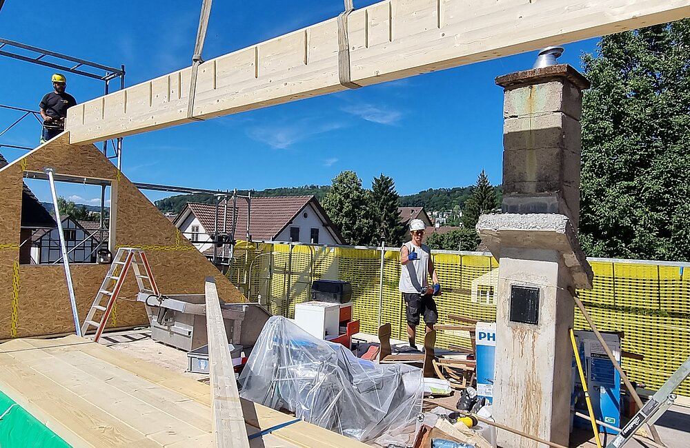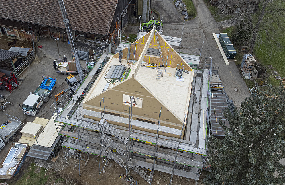 Mit einer Dachaufstockung lässt sich einfach die Anzahl der Etagen eines Ein- oder Mehrfamilien oder eines Gewerbehauses erhöhen. Holz eignet sich ideal, da es leicht, tragfähig und schnell zu verbauen ist. Aufstockungen ermöglichen eine effiziente Flächennutzung und verbessern oft die Energieeffizienz des gesamten Gebäudes durch moderne Dämmstandards.