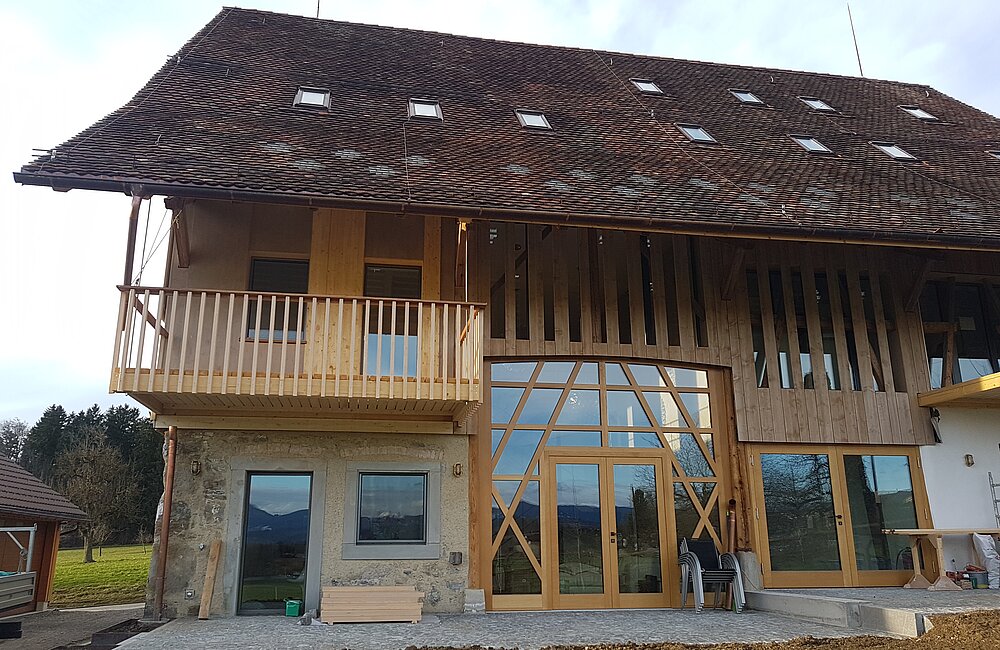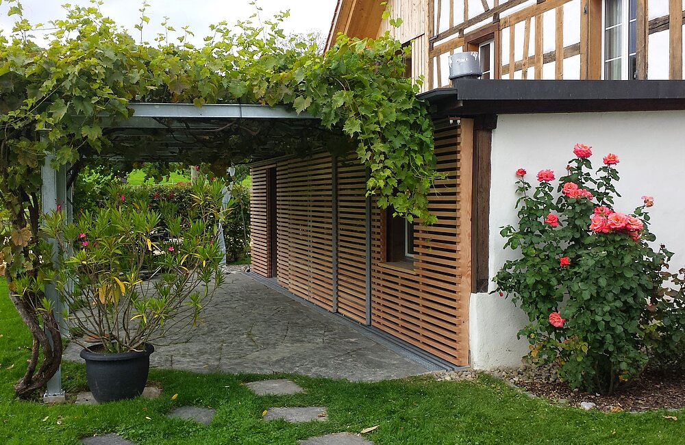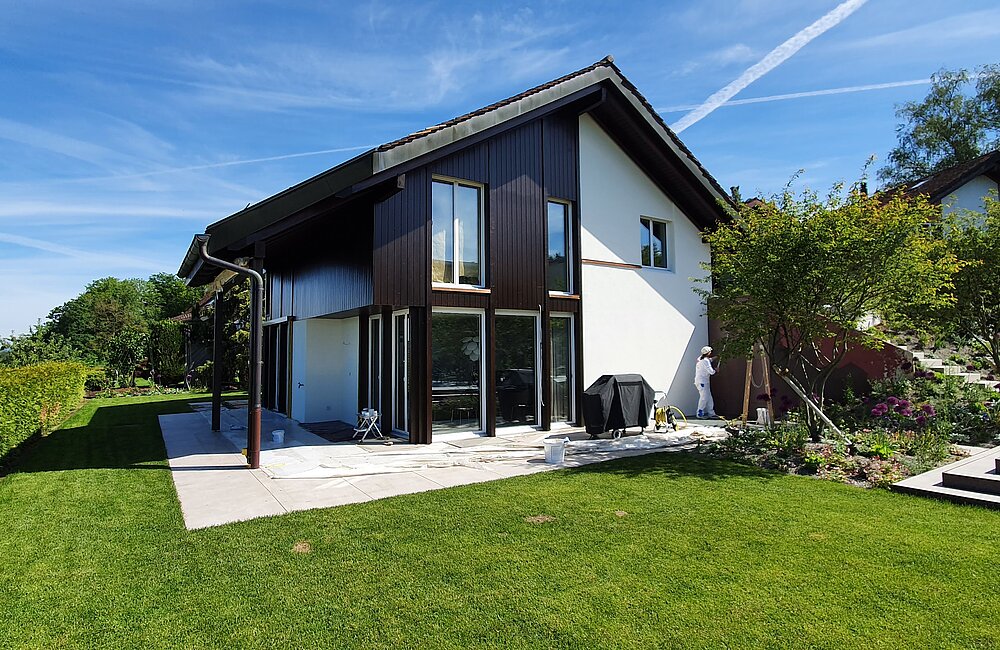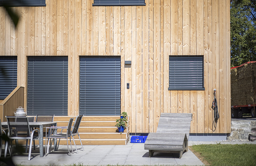 Spezialverfahren wie Vorvergrauungslasuren oder thermische Behandlungen verleihen dem Holz bereits bei der Montage eine einheitliche, edle Optik und verbesserte Eigenschaften.