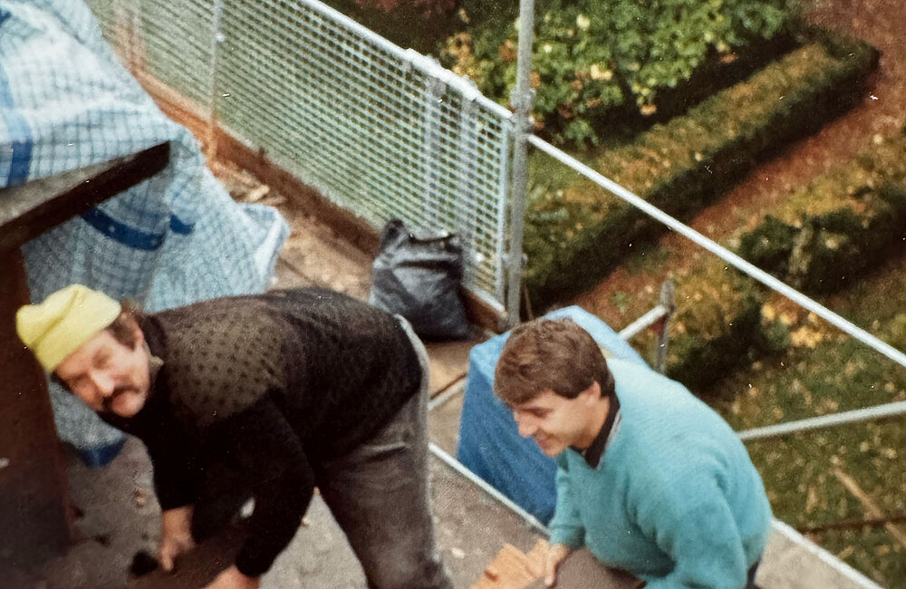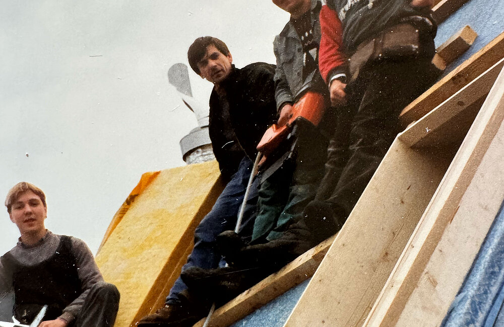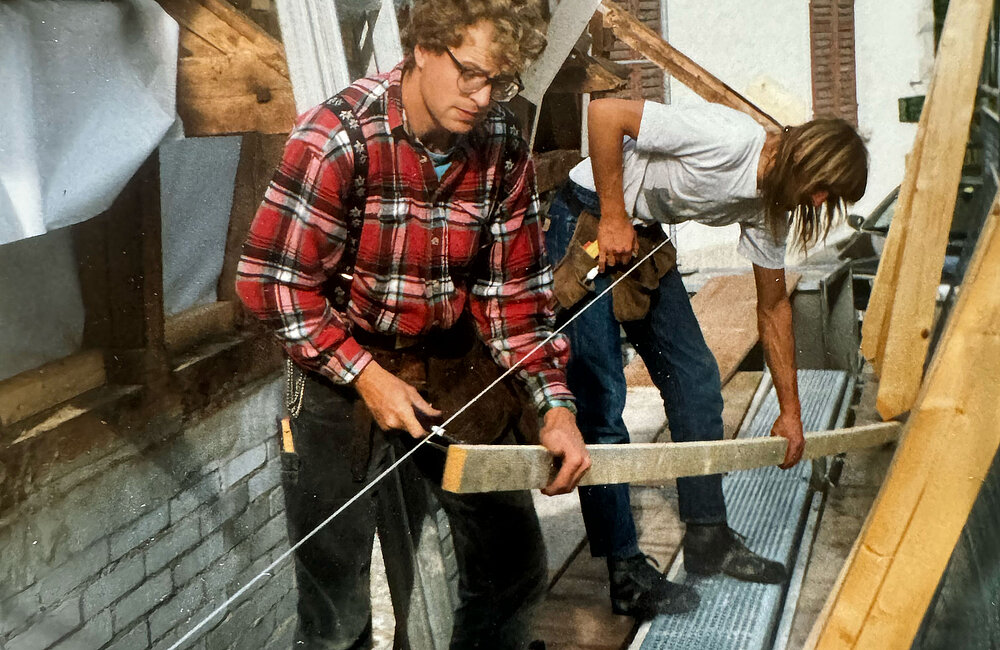 1988–1990 — Tomi Salamon wagt den Schritt in die Selbstständigkeit. Als Polier leitet er Baustellen und übernimmt kleinere Umbauarbeiten im Dach- und Holzbaubereich. Gemeinsam mit seiner damaligen Frau baut er den Dachstock seines eigenen denkmalgeschützten Wohnhauses erfolgreich zu Wohnraum um. Der gelungene Umbau wird zum Vorbild für manch andere Häuser in der Umgebung.