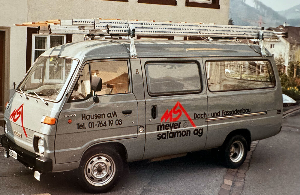 1990 — Gründung der Meyer & Salamon AG zusammen mit Bruno Meyer, dem ehemaligen Lehrmeister von Tomi. Die Firma mit 3 Angestellten ist hauptsächlich im Dachdeckerbereich tätig, der Firmensitz ist Hausen am Albis, Magazin und Werkstatt in Baar. Das junge Unternehmen zeichnet sich durch hohen Qualitätsanspruch und konsequente Arbeitssicherheit aus – Dachdeckerarbeiten werden ausschliesslich mit Gerüst ausgeführt. (Bei den damaligen Marktbegleitern war dies nicht immer der Fall.)